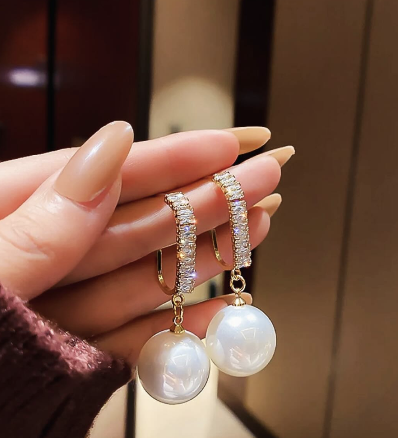 Timeless elegance with a hint of sparkle — these stunning earrings feature a gold-toned hoop encrusted with shimmering zircon stones, gracefully finished with a lustrous pearl drop. Perfect for special occasions or adding sophistication to your everyday look, these earrings are a blend of grace and glamour.