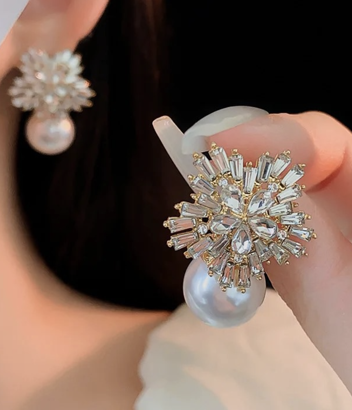 Inspired by winterβs magic, these snowflake-shaped earrings sparkle with precision-cut zircons and are delicately finished with a soft pearl drop. Radiating elegance and icy brilliance, theyβre the perfect choice for festive occasions, bridal looks, or adding a dreamy touch to any outfit.